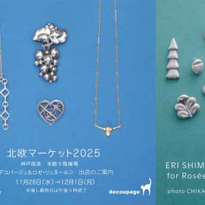 毎月、デザイン担当デコパージュ太田が代官山店で、新作やアンティークジュエリーのフェアを開催しますので、