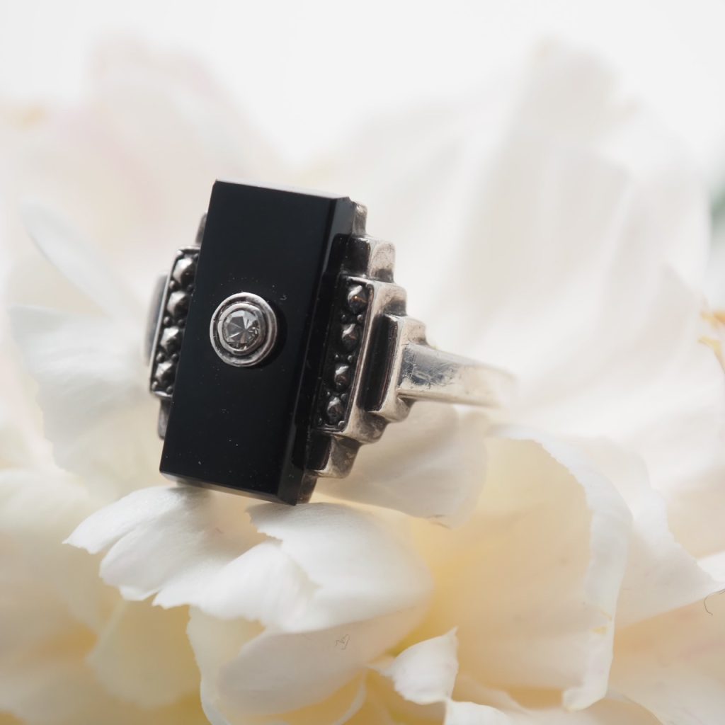 シルバー オニキス&ダイヤモンド アールデコリング