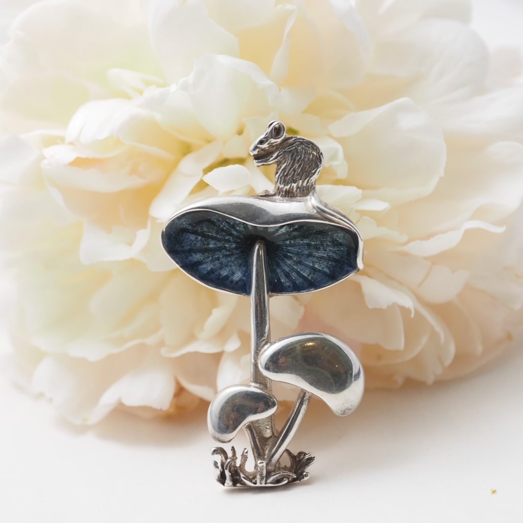 Norman Grant ノーマン・グラント シルバーエナメル「きのことネズミ」ブローチ