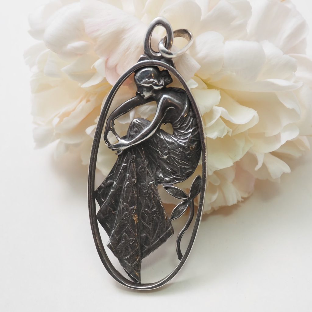 フレンチアンティーク シルバー・アールヌーヴォーレディ ペンダントトップ「アイリスのドレス」
