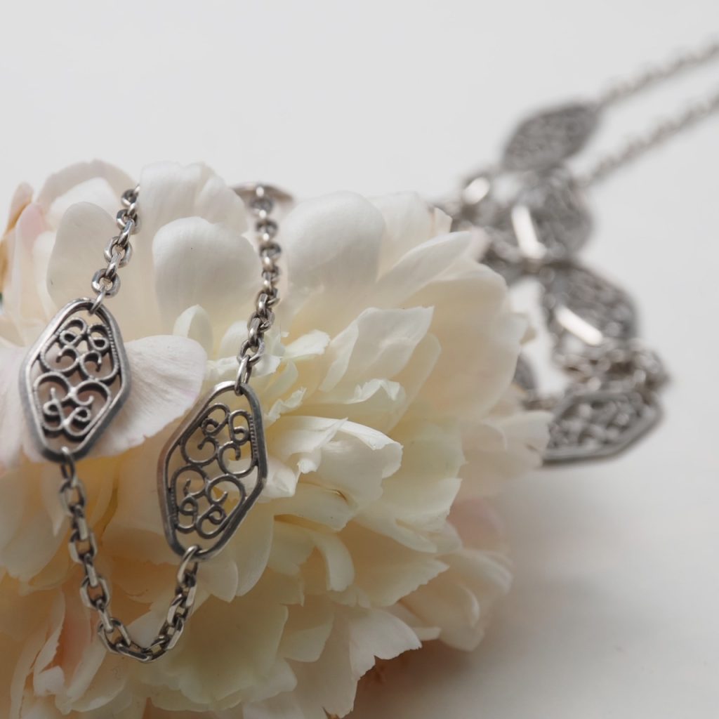 フレンチアンティーク シルバー・フィリグリー ステーションチェーン88cm