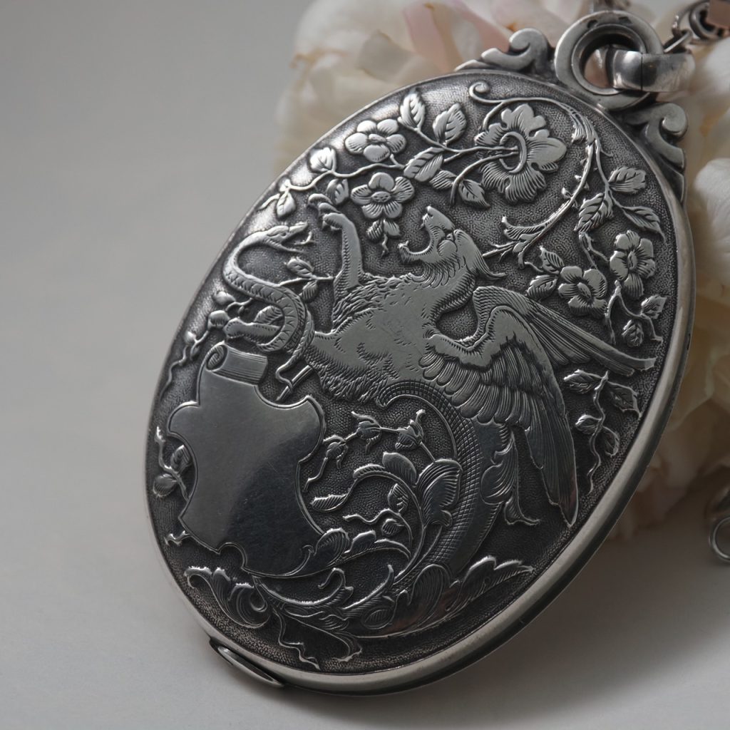 フレンチアンティーク 「グリフィンとヘビ」シルバー・スライドミラーペンダント