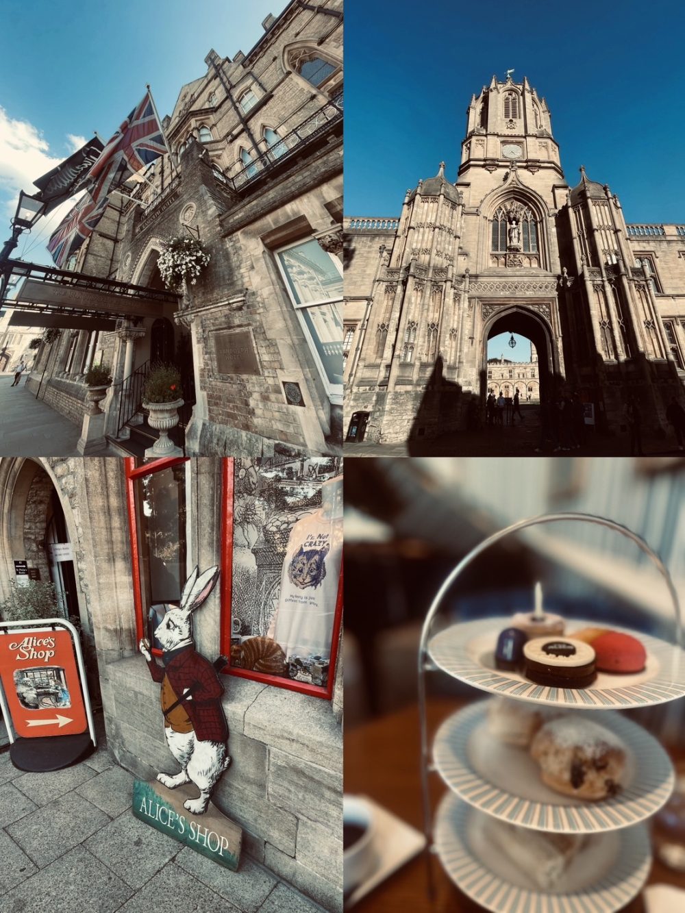不思議の国のアリスの作者、ルイスキャロルが住んできたオクスフォードはアリスの聖地でもあり、近年ではハリーポッターのロケ地の聖地として有名です。正式なアフタヌーンティーを体験したことがなかったので、オクスフォードの由緒あるホテルでアリスのアフタヌーンティーを体験してきました。3段のトレイにサンドイッチ、スコーン、ケーキと、紅茶で優雅に楽しむアフタヌーンティー。メニューもアリスのお話で、Drink meと書かれた小瓶のモクテルや、アリスの登場人物のケーキなど、とても凝っていました。詳しくはまた後日買付日記で書きますね。