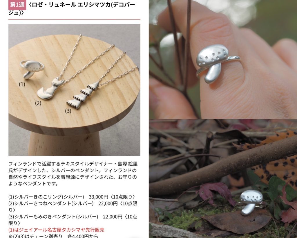 さらに、名古屋タカシマヤ25周年を記念し、人気の「きのこのリング」を名古屋会場にて先行販売いたします!この機会にぜひご覧ください。