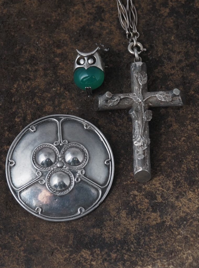 ・ハンマリングが美しいアート&クラフトのブローチ。