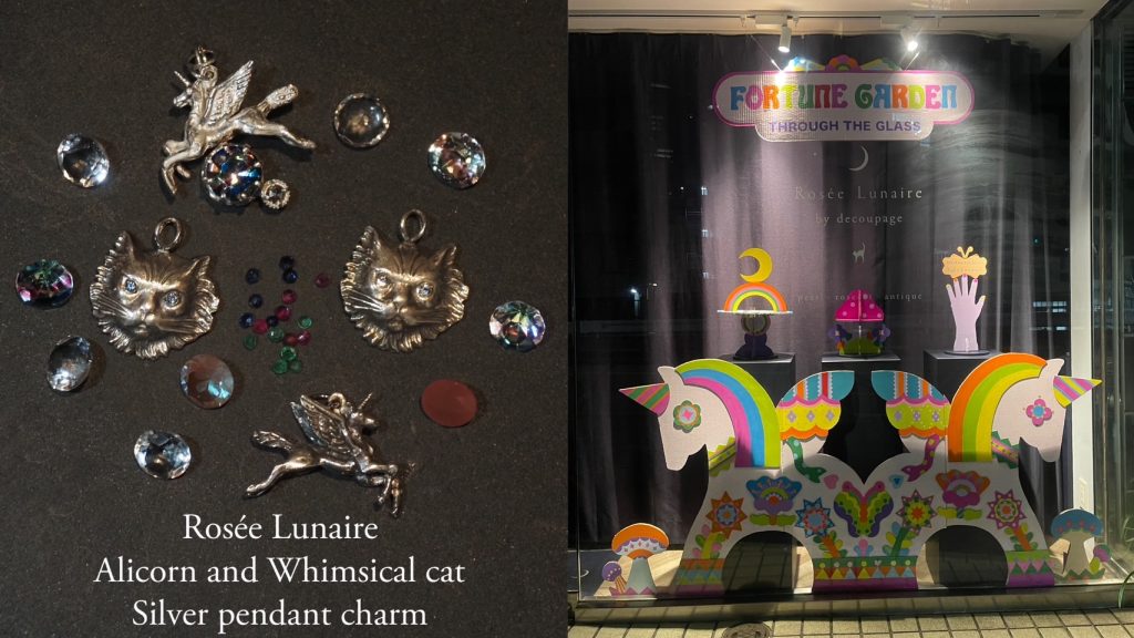 普段は「夜」のイメージが強い代官山ロゼ・リュネールのウィンドウが、金谷裕子さんの多幸感あふれるフォーチュンガーデンに変身しました!