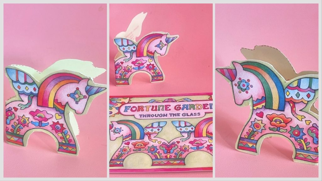 デコパージュとロゼ・リュネールでは、切り抜くと愛らしいアリコーンのスタンドカードになるDMも配布しております。
