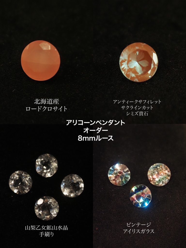 1点ずつ模様の違う虹色のラインの入ったビンテージガラスで今では作ることができません ・幻の国産石「北海道産ロードクロサイト」