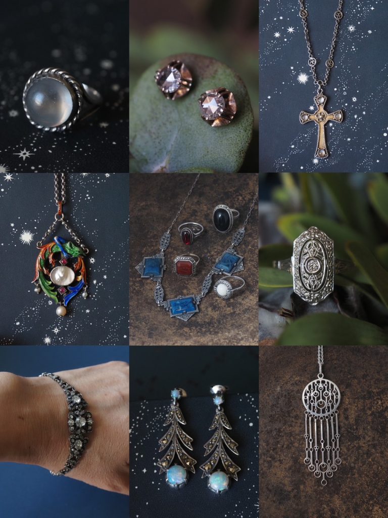 ホリデーシーズンにふさわしいローズカットダイヤモンドやムーンストーン、アールデコジュエリー、そして新入荷の北欧ジュエリーなどが並びます。