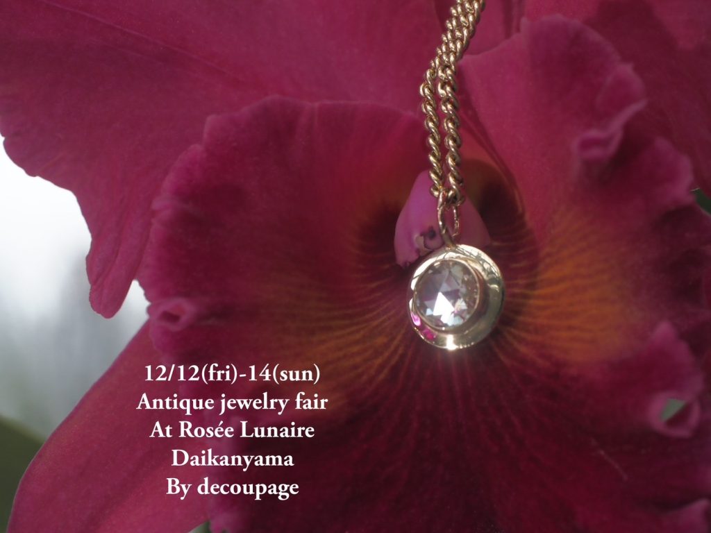 私、太田は名古屋から東京へ向かい、上記期間中代官山にてアンティークジュエリーフェアを開催いたします。