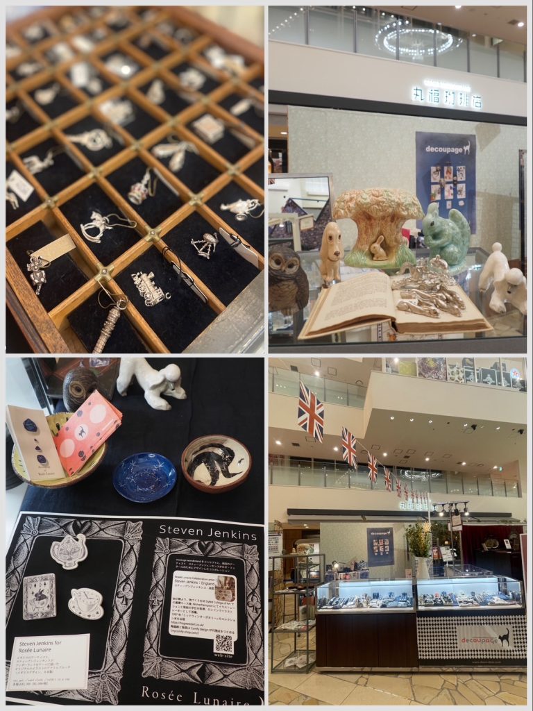 イギリス人アーティスト、スティーブンジェンキンス氏のコラボブローチは9デコパージュブース、陶器と版画は10階のコンフィデザインさんでお取り扱いしてます