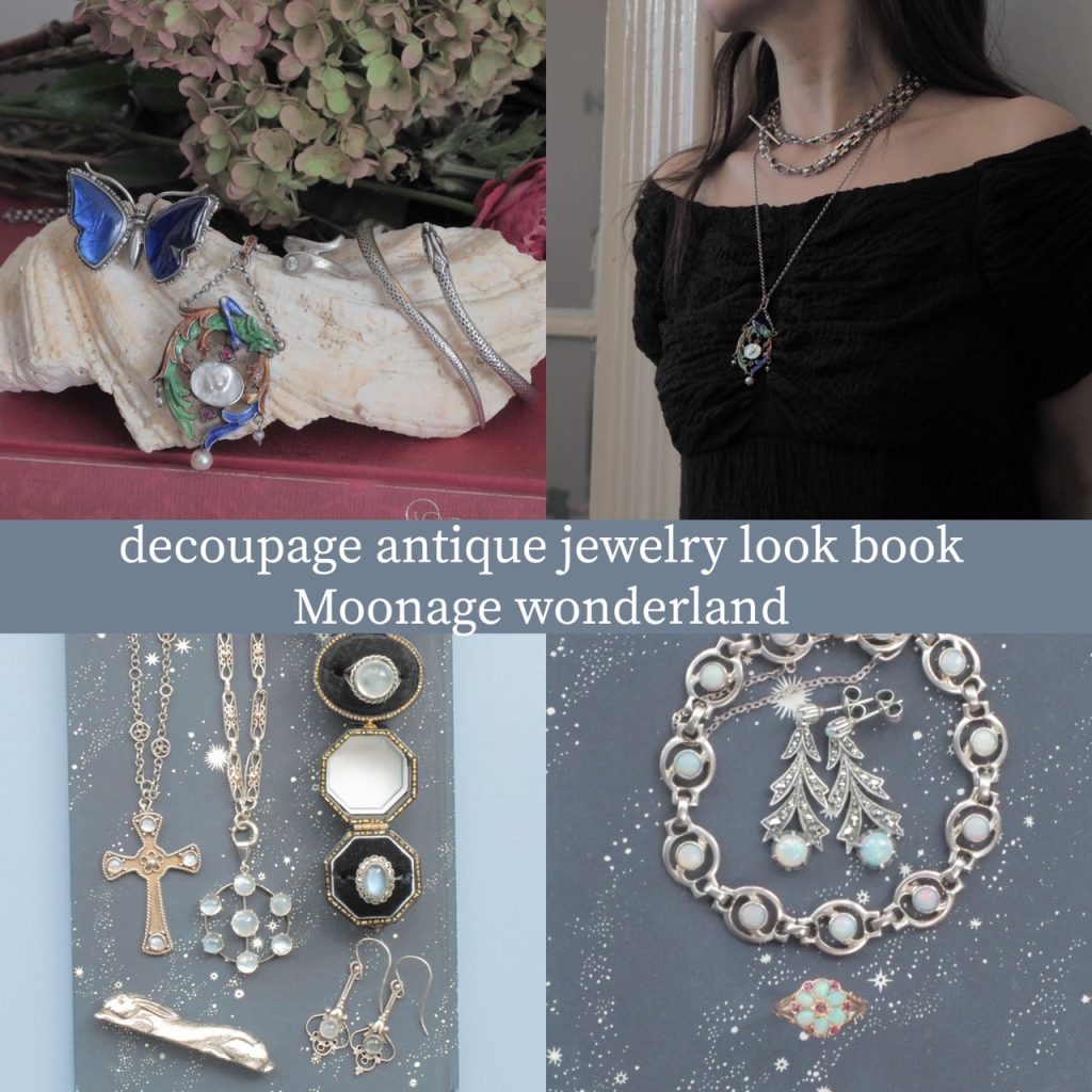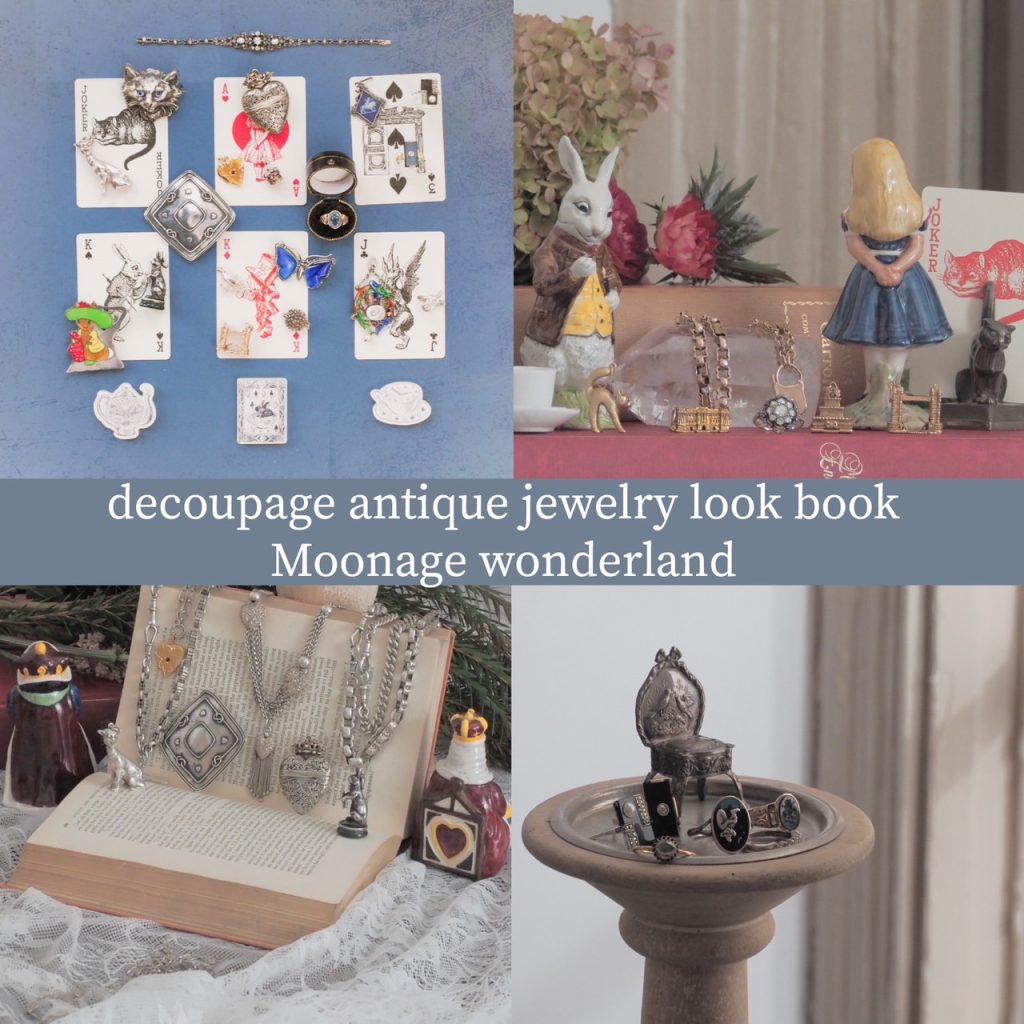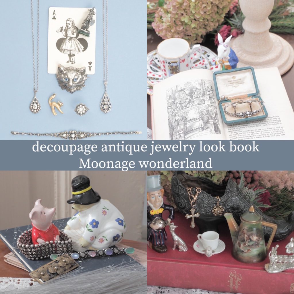 今日はオープン前の英国フェアのディスプレイの様子と、完成したばかりのルックブック「moonage wonderland 」の写真をご紹介します。2年ぶりとなるアンティークジュエリーのルックブックは夜の異人館で撮影したアリスな雰囲気の素敵なカタログに仕上がりました。イーブックも準備中です!催事中のため、文章少なめになってしまっていますが、デコパージュのInstagramは毎日更新していますので、よかったらご覧になってくださいませ。