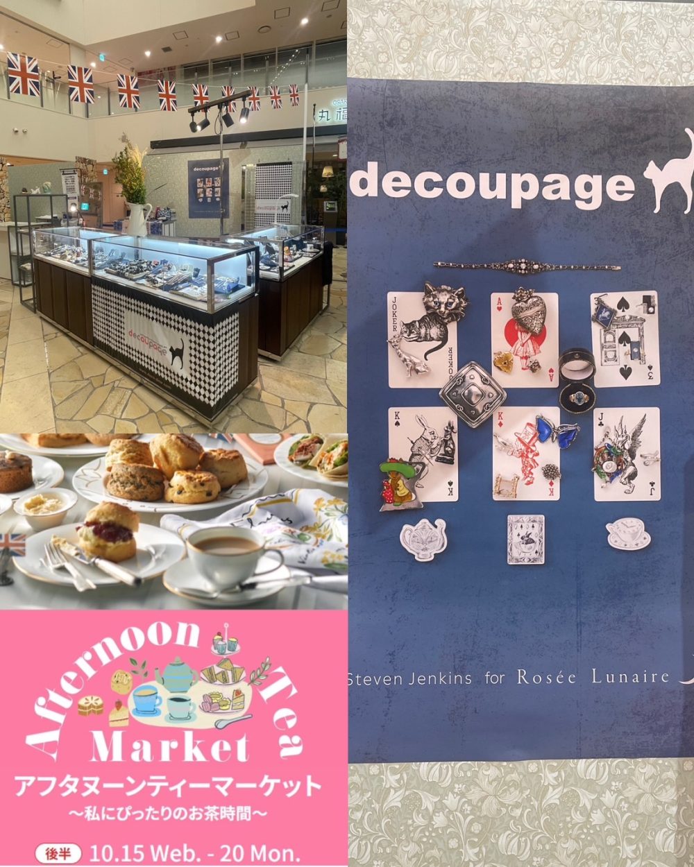 デコパージュandロゼ・リュネールの太田亜紀子です。10月15日(水)から20日(月)まで阪急うめだ本店9階祝祭広場の英国フェアに出店しております。デコパージュのブースは祝祭広場の丸福コーヒーの向かいあたりです。大きなポスターを製作したのでわかりやすいかな?と思います。